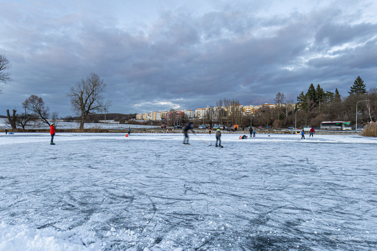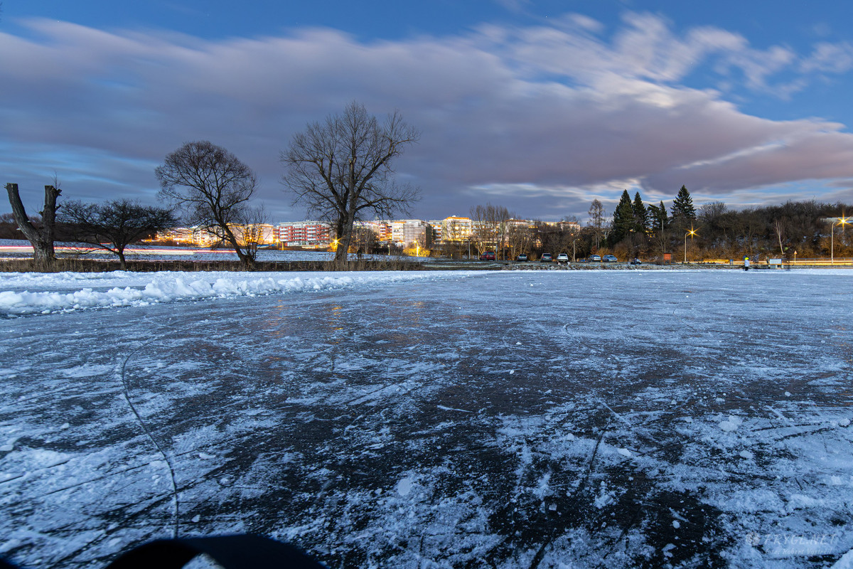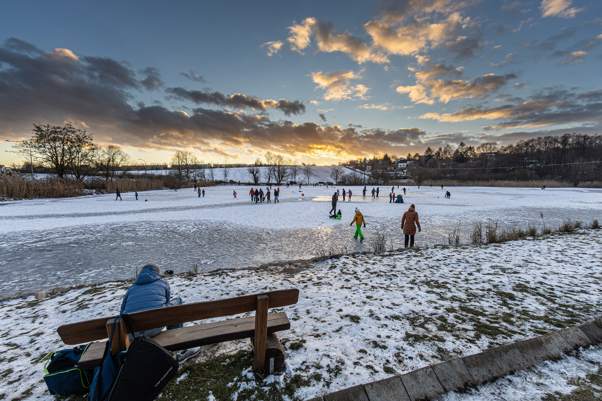 FOTO: Tenký led na Prýglu láká bruslaře. Vstup na hladinu ale zatím není bezpečný