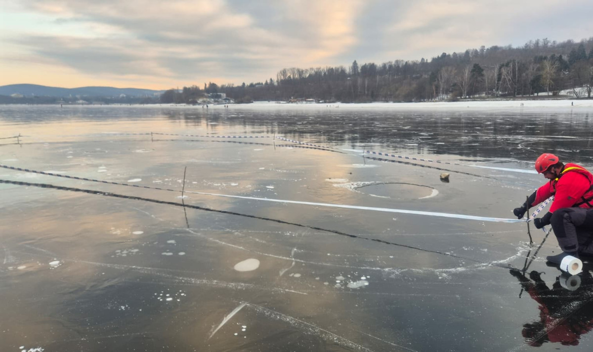 Na Prýglu se tvoří díry v ledu. Nestrhávejte varovné pásky, prosí strážníci