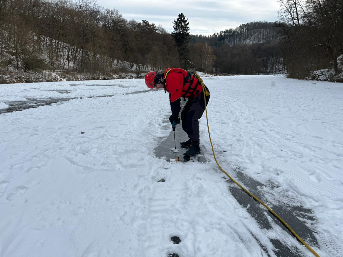 Led na Prýglu je zrádný. Přesvědčila se o tom žena, která se do přehrady zřítila