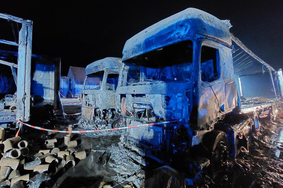 Rozsáhlý požár kamionů na Znojemsku zaměstnal hasiče až do noci
