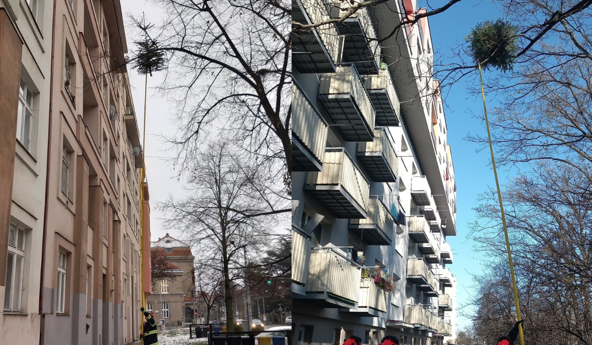 V korunách brněnské zeleně uvízly vánoční stromky. Popasovat se s nimi museli hasiči
