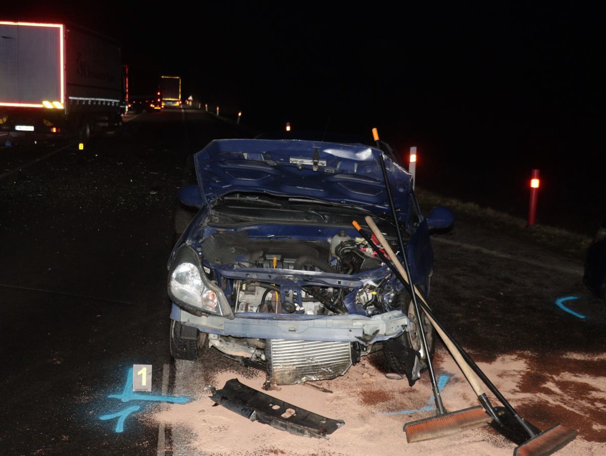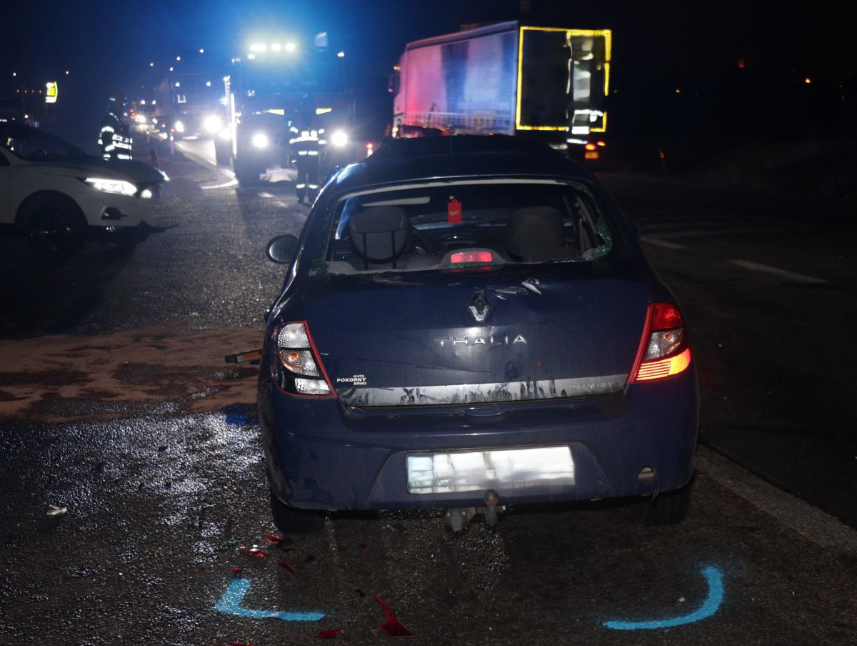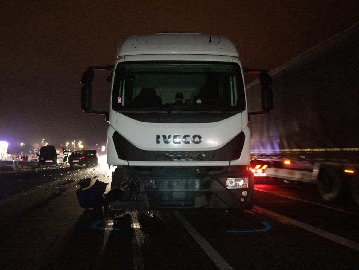 FOTO: Opilý řidič ignoroval značky a tvrdě narazil. U Mikulova ho smetl kamion