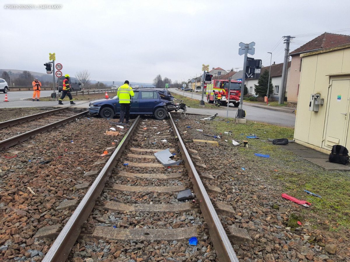 Srážka vlaku s autem zastavila trať na Vyškovsku, zranila se seniorka