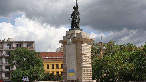 V Brně někdo na pomník rudoarmějce nakreslil ukrajinské srdce