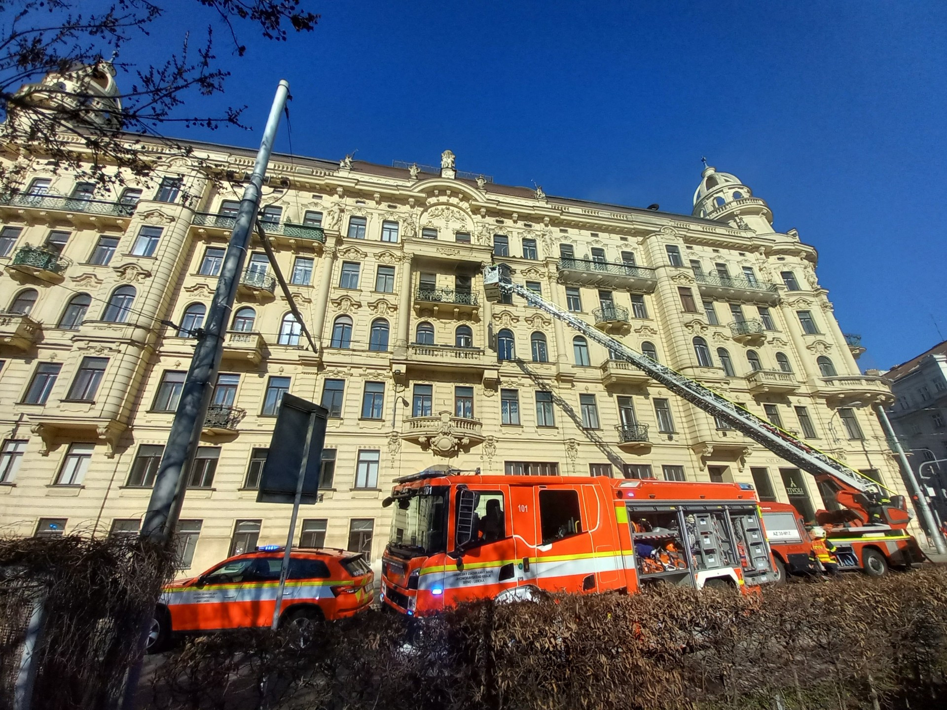 Hasiči zasahovali u požáru na Konečného náměstí v Brně, jedna osoba utrpěla zranění