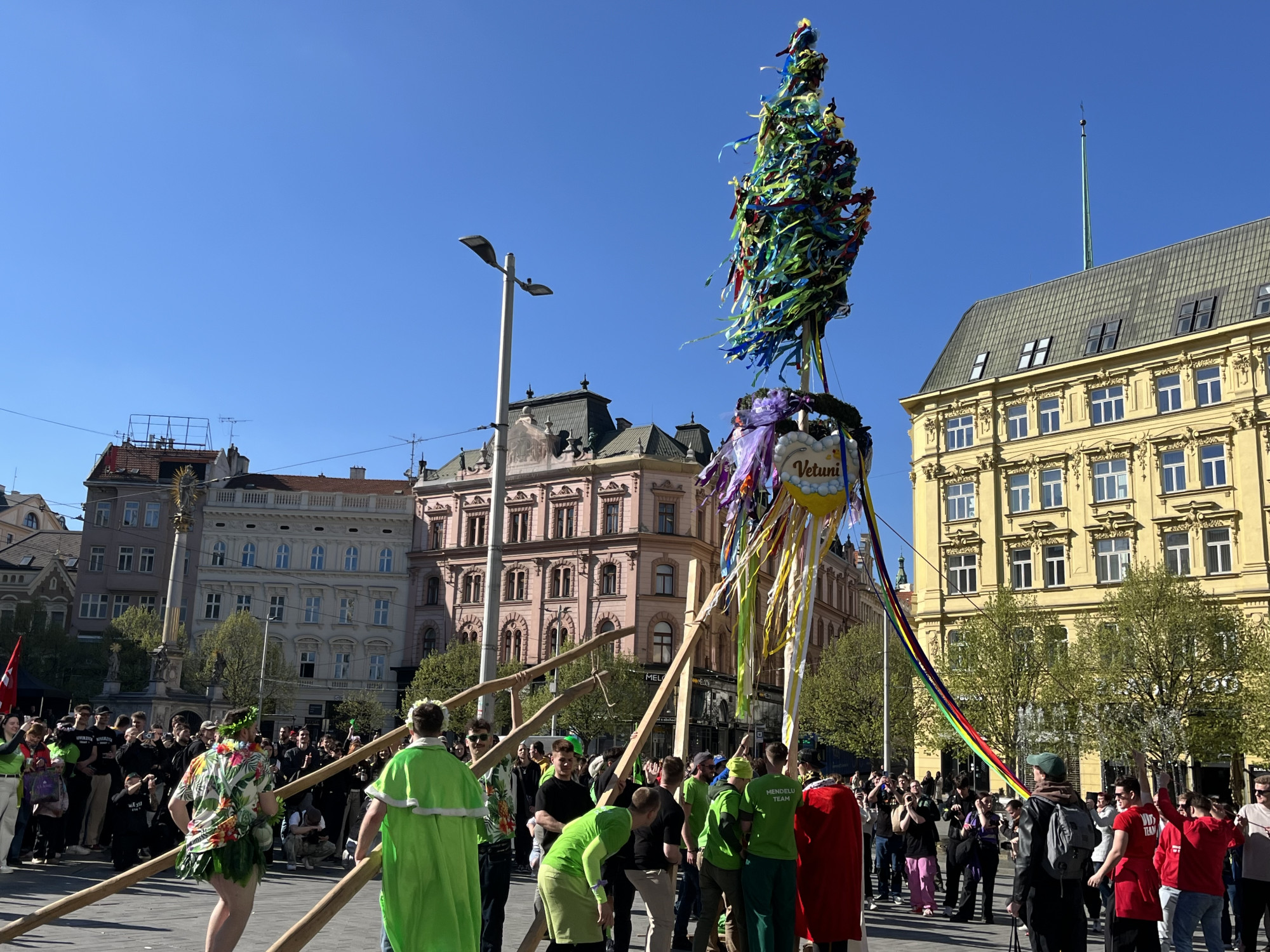 VIDEO: Studenti v Brně odstartovali majálesové oslavy. V centru postavili májku