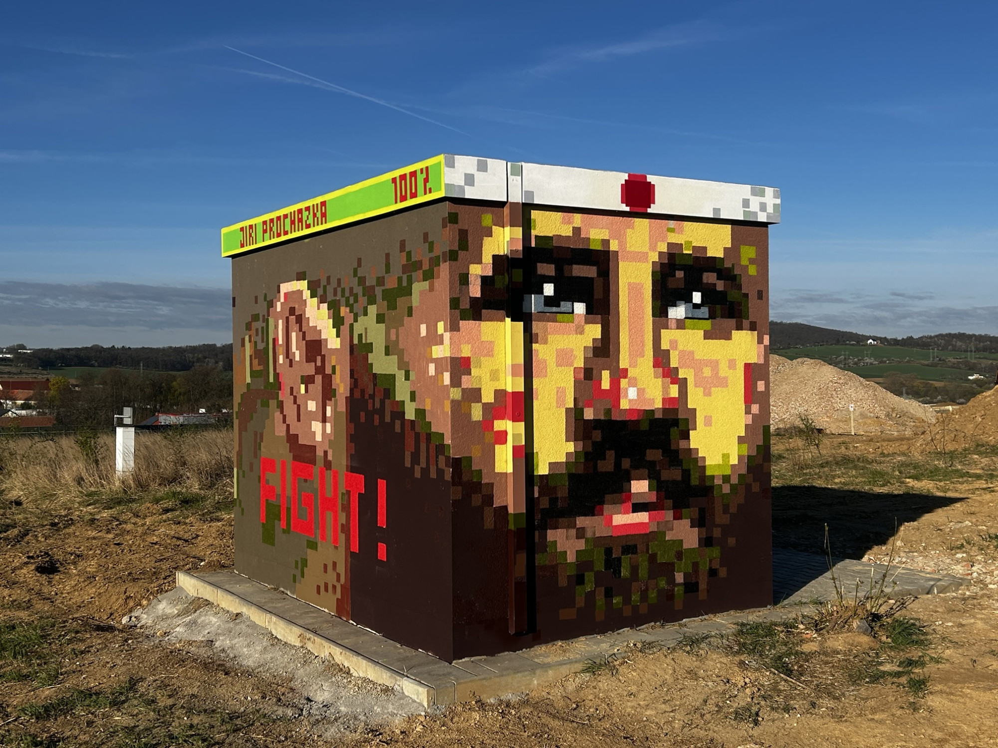 Trafostanici u Brna zdobí malba bojovníka Procházky. Autoři vsadili na herní estetiku
