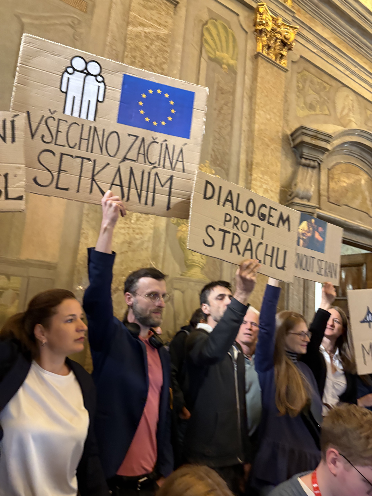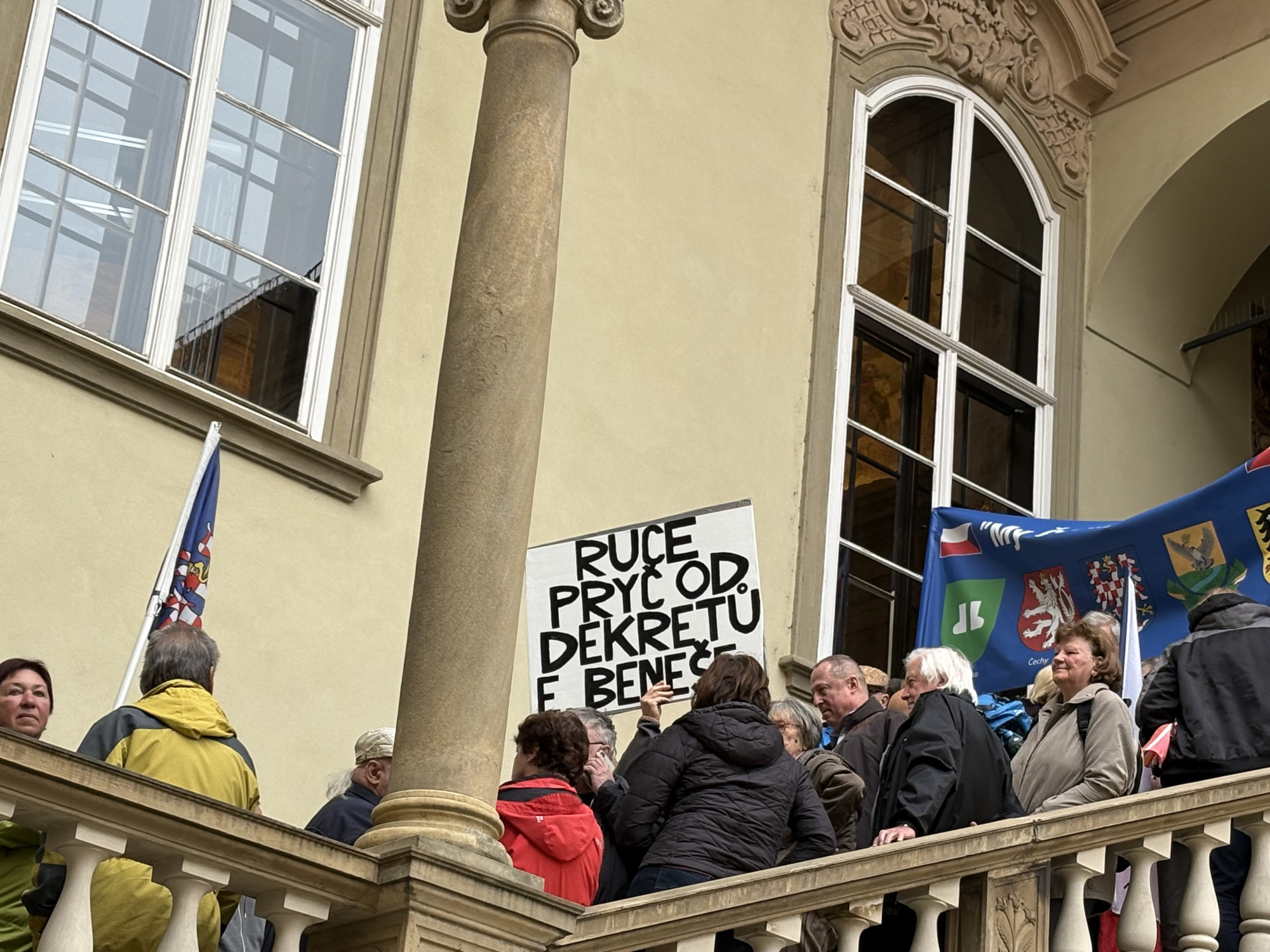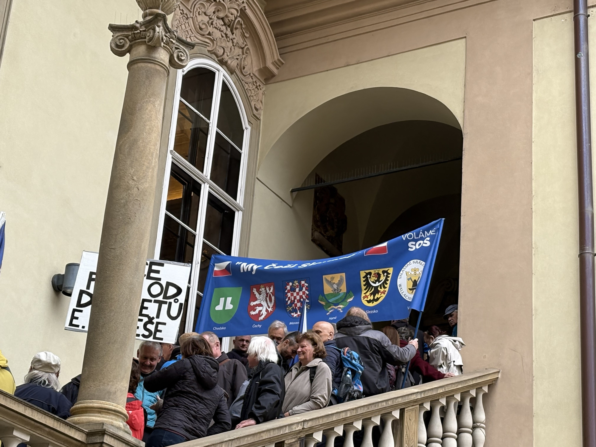FOTO: Lidé na zastupitelstvu v Brně protestují proti sjezdu sudetských Němců