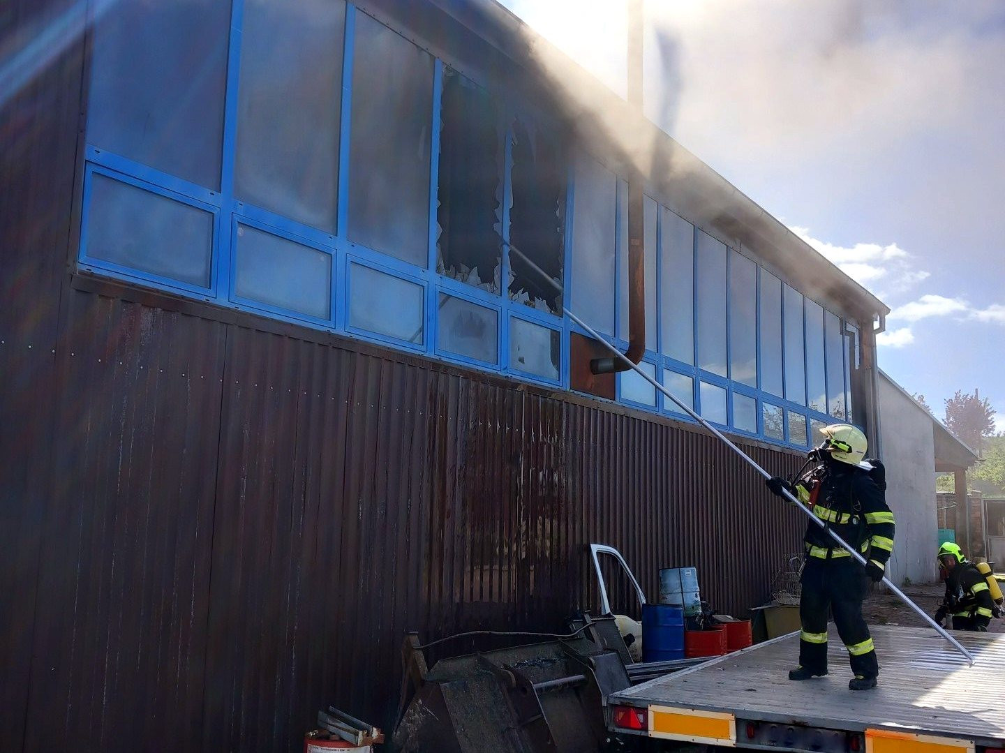 Hořela dodávka i náklaďák. Požár autodílny na Břeclavsku zavinila technická závada