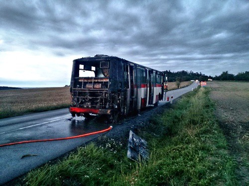 Na Brněnsku hořel autobus, cestující se dostali ven bez zranění