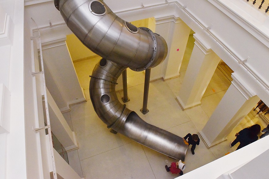 Kovová skluzavka je novým symbolem Pražákova paláce v Brně