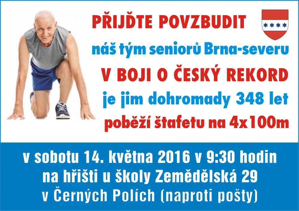 Senioři Brna-severu se pokusí zlomit český rekord ve štafetě; společně mají 348 let