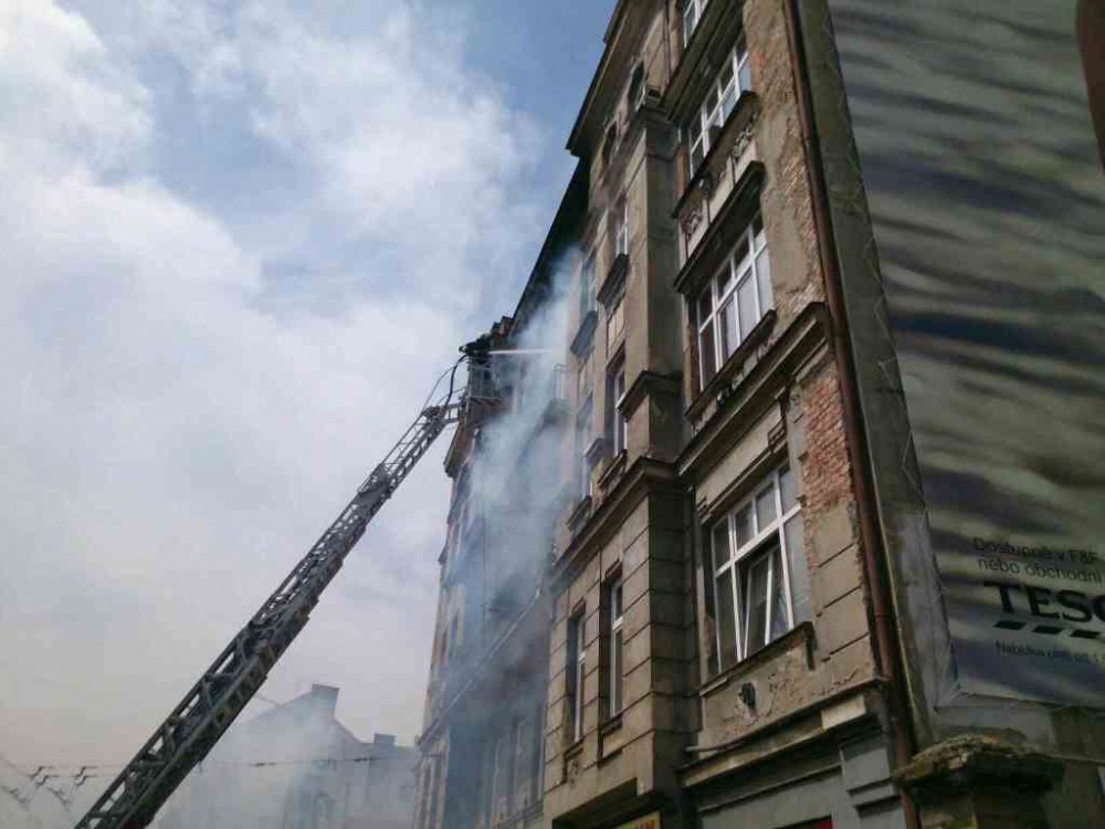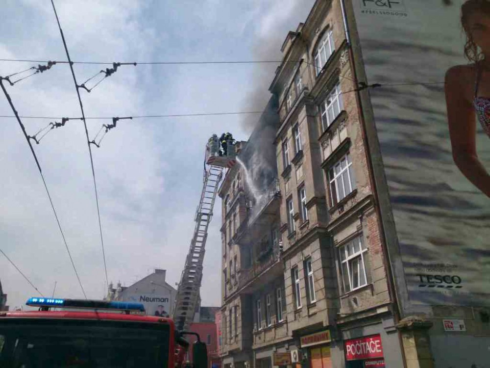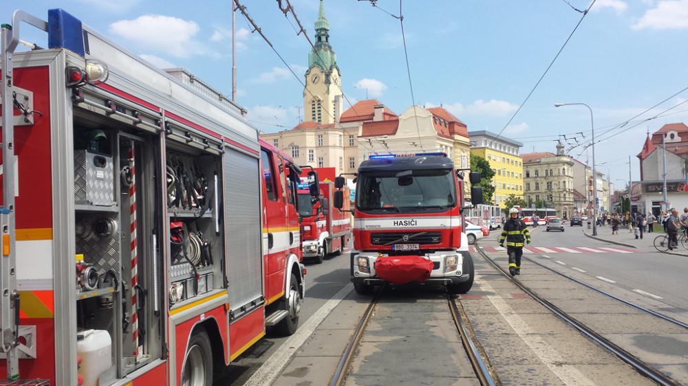 FOTO: Hasiči zlikvidovali požár ve výškové budově na Křenové, doprava stála