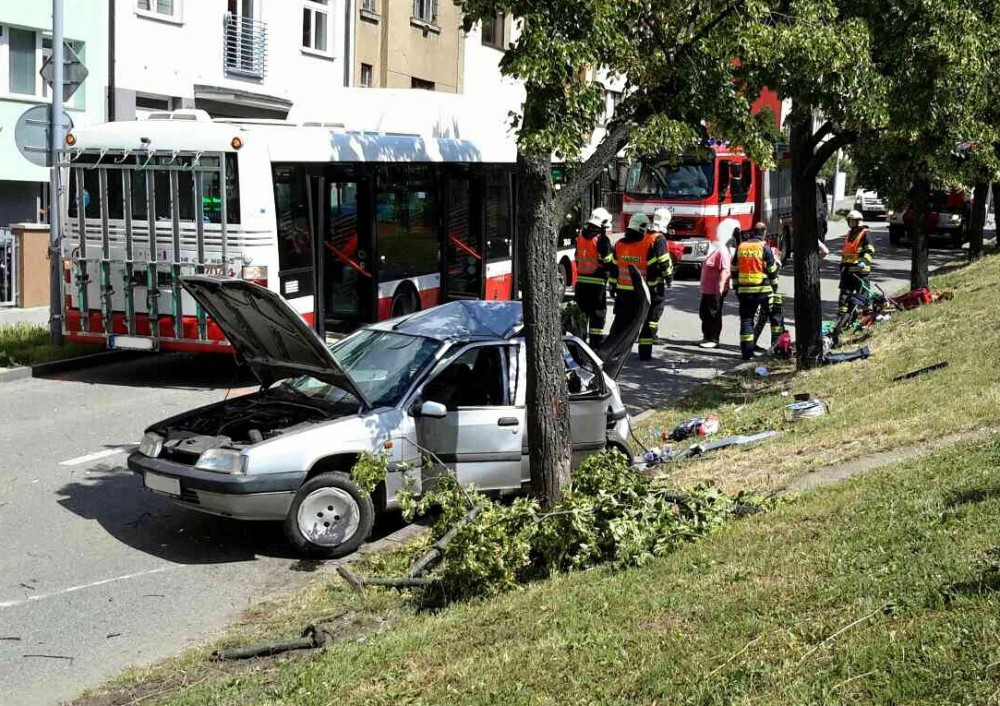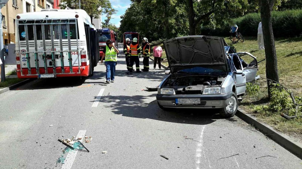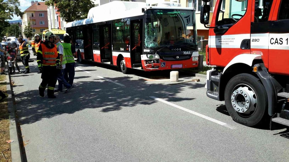 FOTO: Čtyři lidé se dnes zranili při srážce auta s autobusem