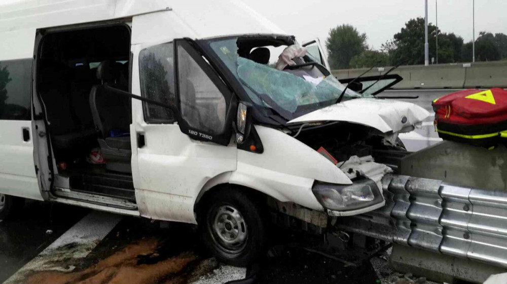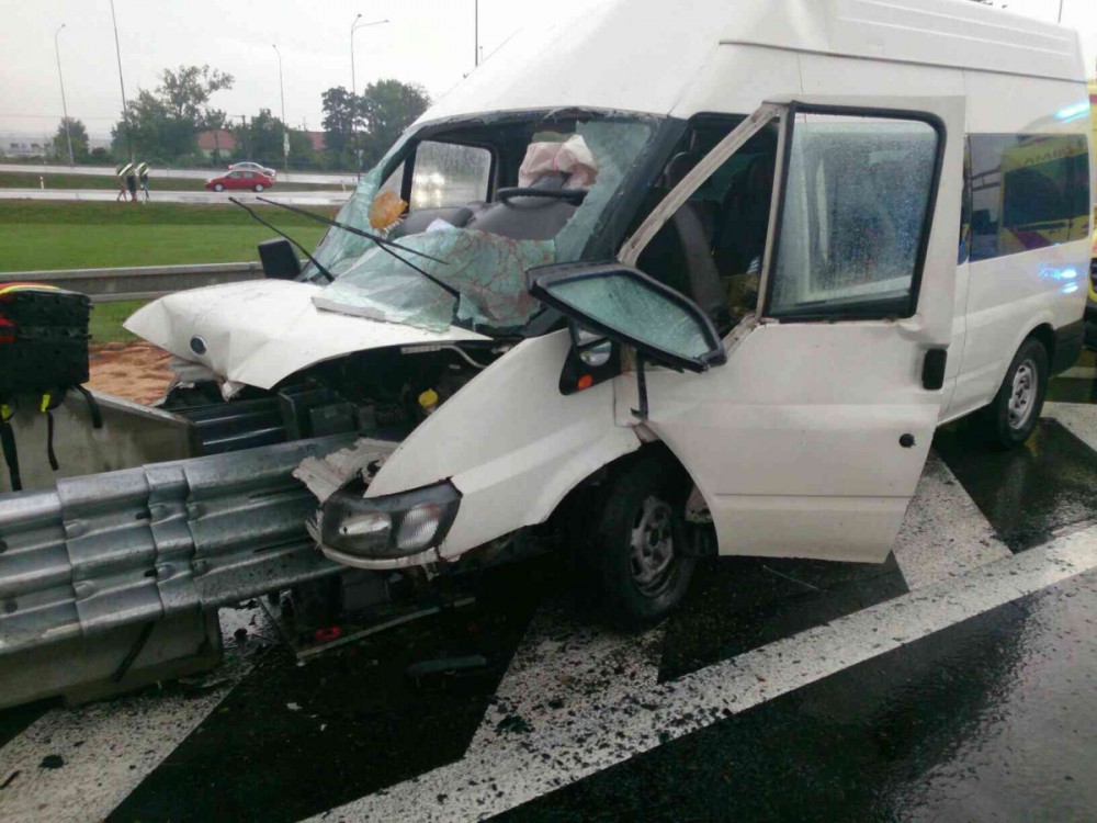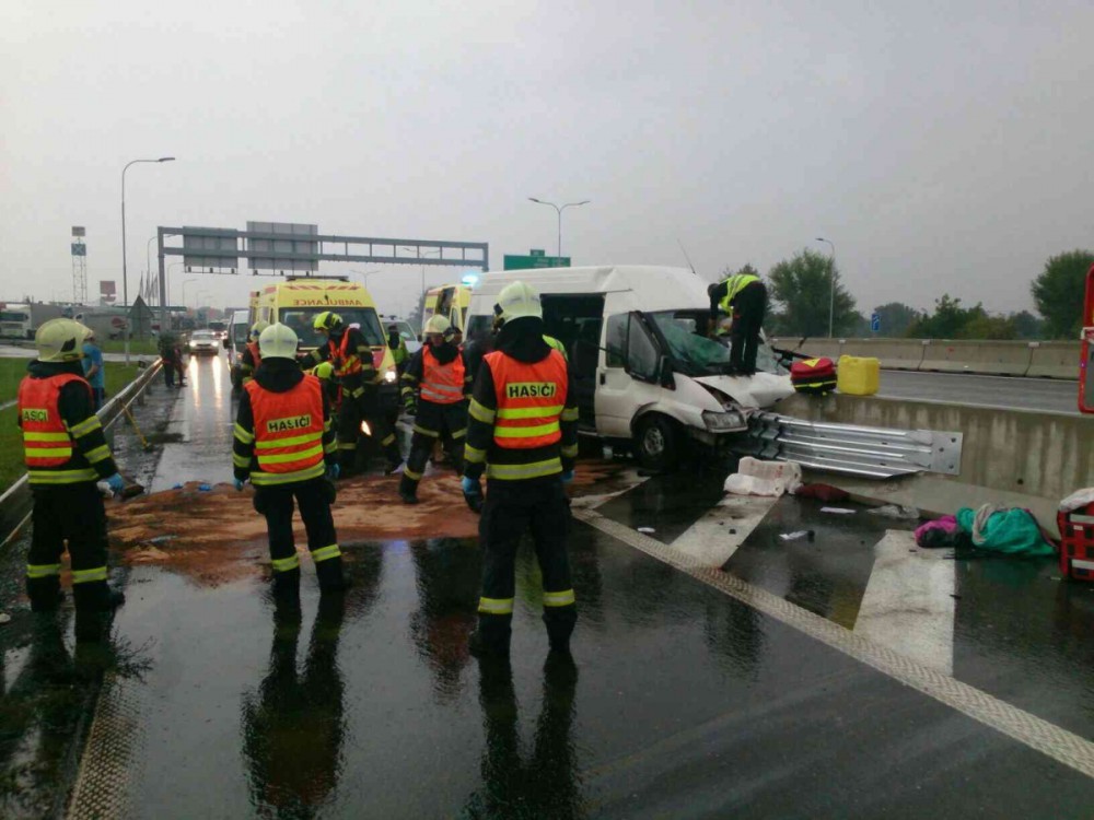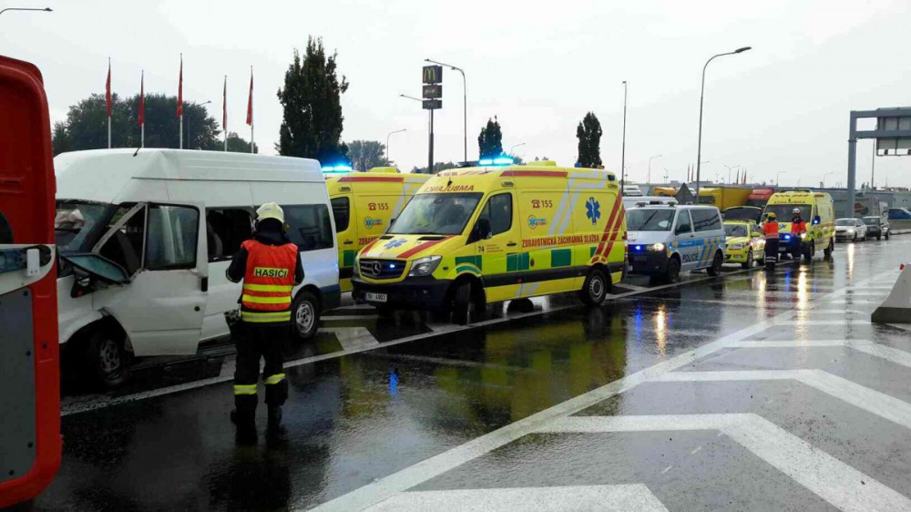 Při havárii dodávky na dálnici D2 v Brně se zranilo sedm cizinců