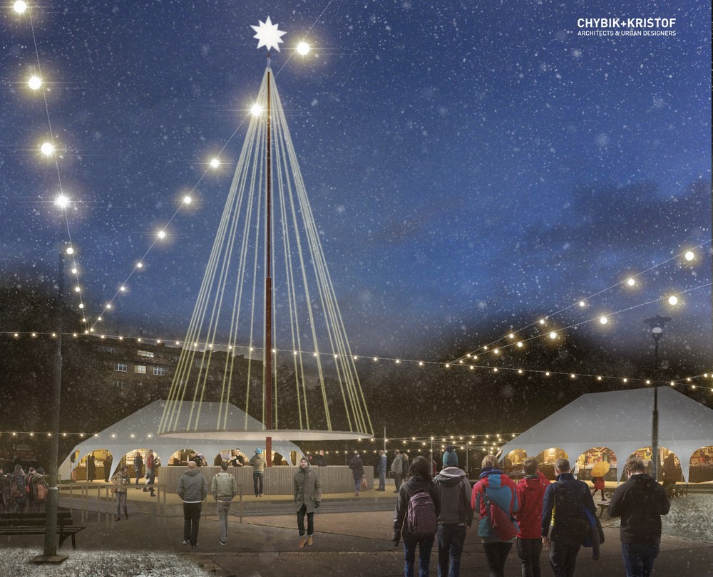 Vizualizace adventních trhů na Moravském náměstí, zdroj:  Chybik+Kristof Architects & Urban Designers