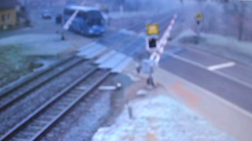 VIDEO: Řidič autobusu vjel na přejezd na červenou a riskoval srážku s vlakem