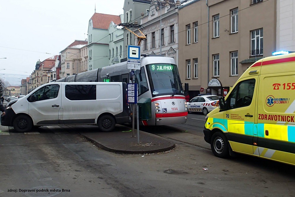 Špatně zabržděná dodávka ve středu nabourala šalinu a lehce zranila dvě ženy