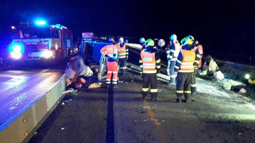 Na D1 dnes ráno bourala dodávka, šest lidí se zranilo. Řidič nejspíše usnul za jízdy