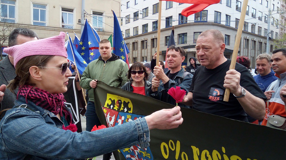 Pochod krajní pravice rušilo bubnování a zpěv odpůrců. 'Brno nehajluje!' neslo se Moravákem