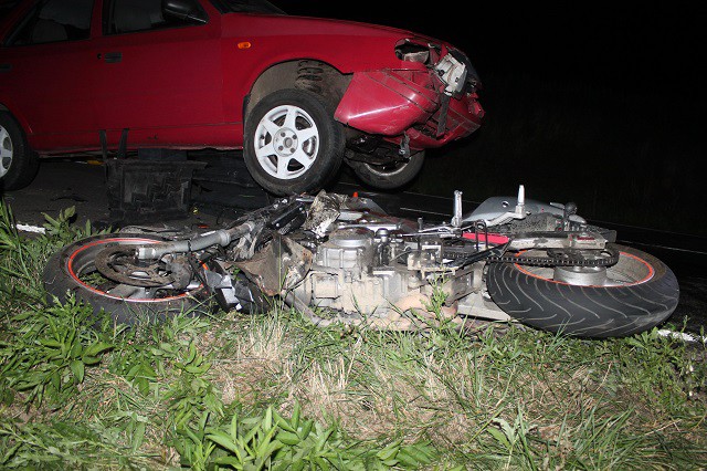 Devatenáctiletý motorkář se čelně srazil a zůstal zaklíněný pod Felicií, na místě zemřel