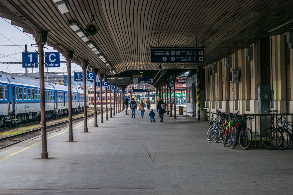 Nástupiště na hlavním nádraží v Brně