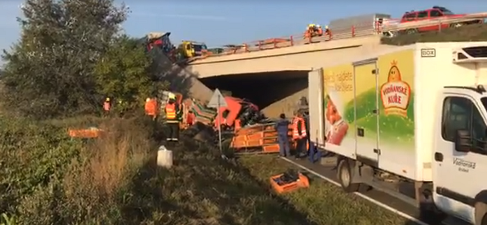 Na D52 na Brněnsku bouraly dva kamiony, jeden převážel šest tisíc kuřat