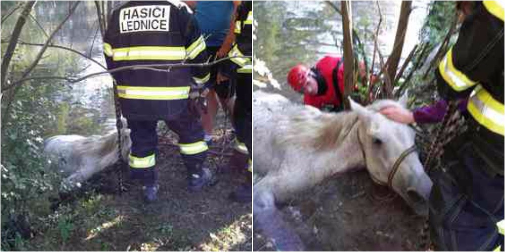 Hasiči zachránili koně, který se utápěl ve vodě a blátě