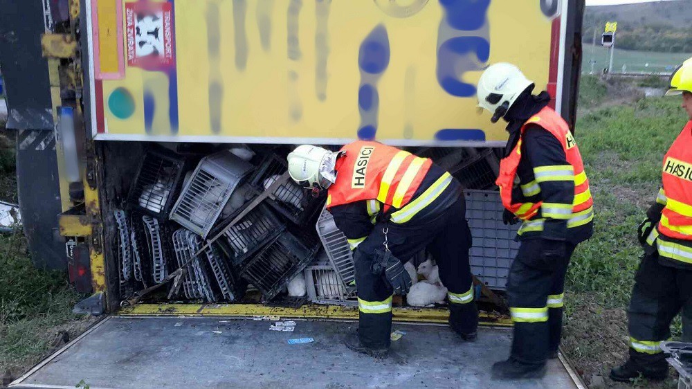U Bučovic havaroval kamion převážející králíky