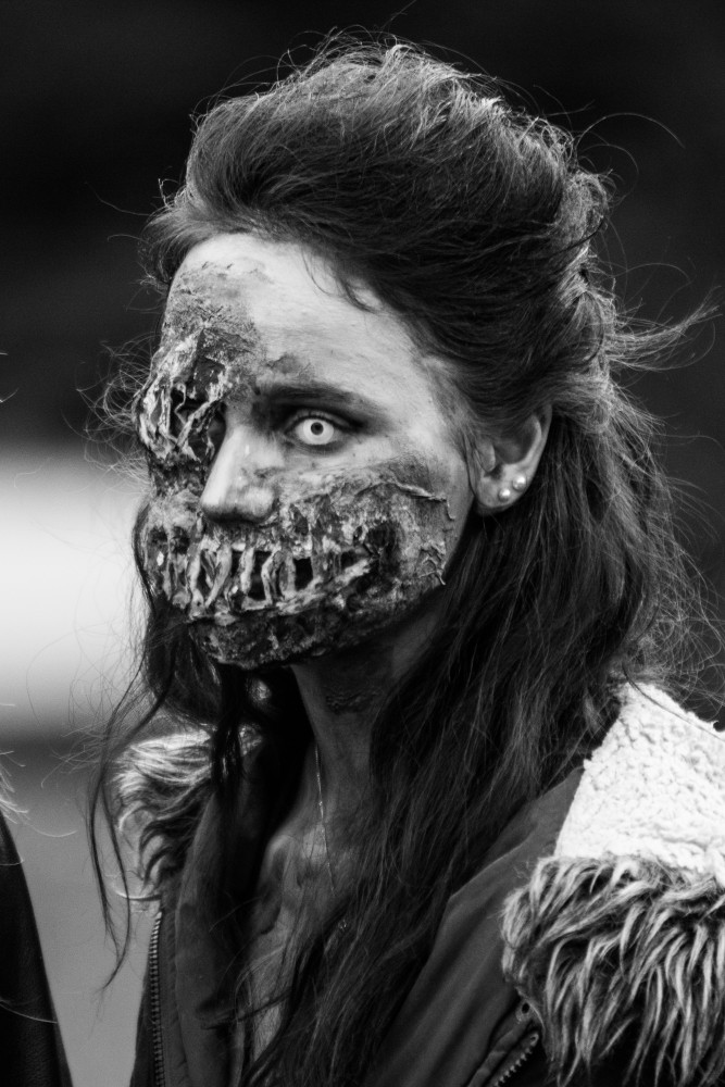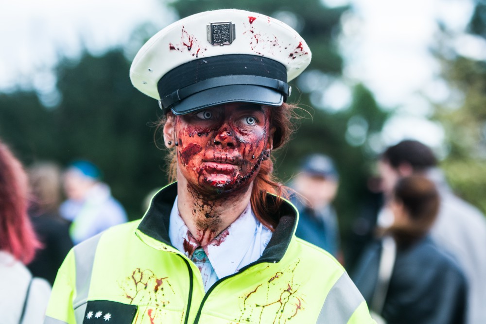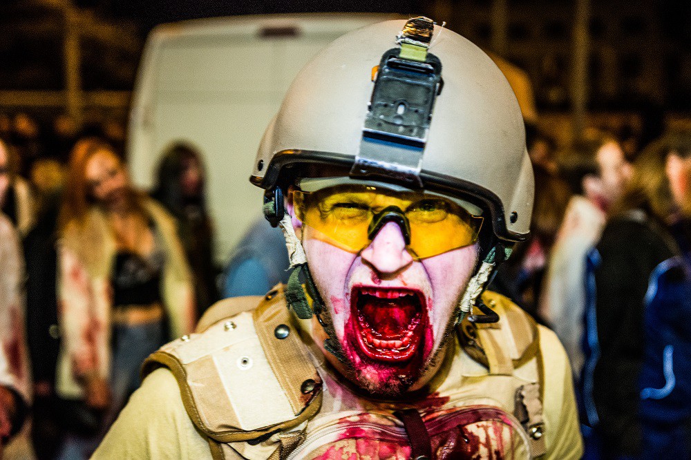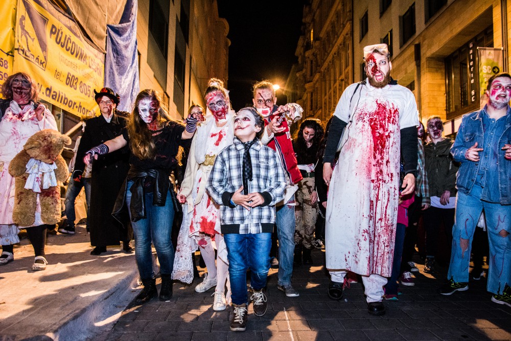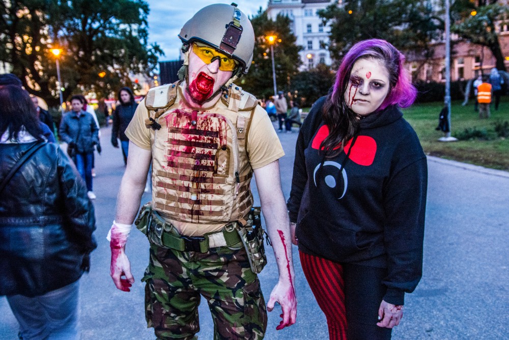 FOTO: Šílené pohledy, výstřely, krev a kusy lidských těl. Brnem se převalila vlna zombie