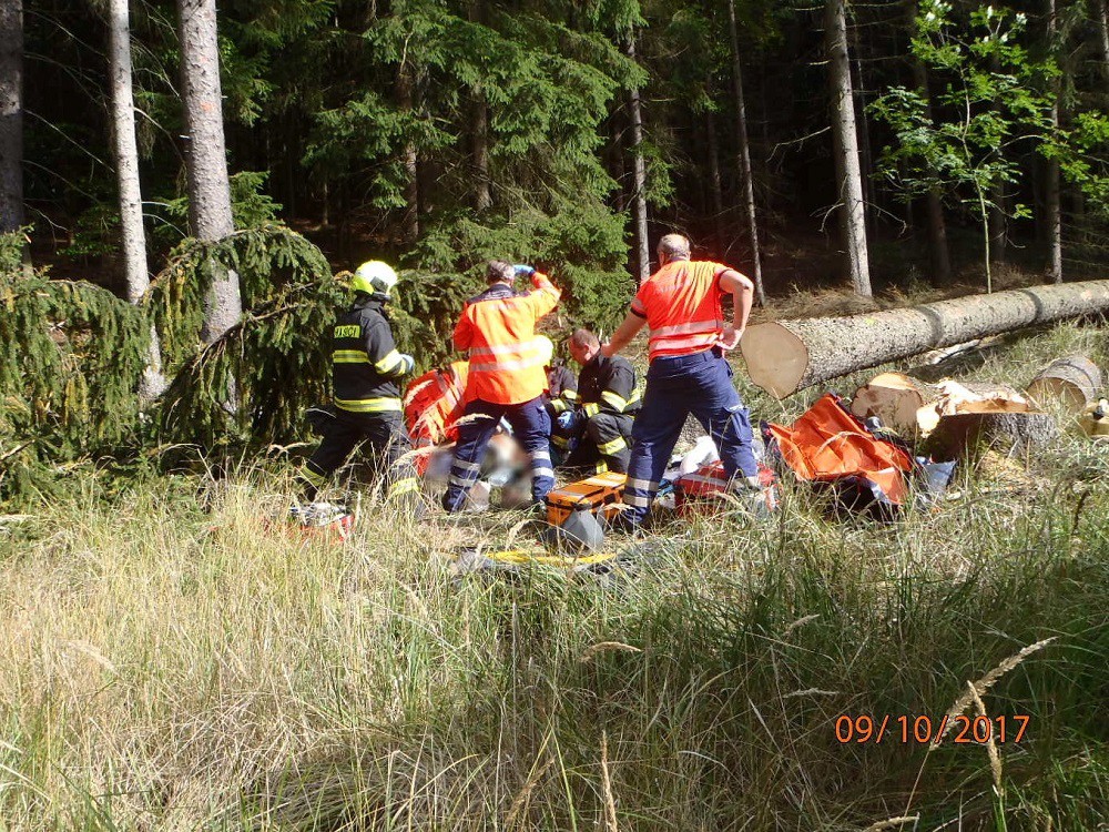 Na lesního dělníka spadl strom. S vážným zraněním ho transportoval vrtulník