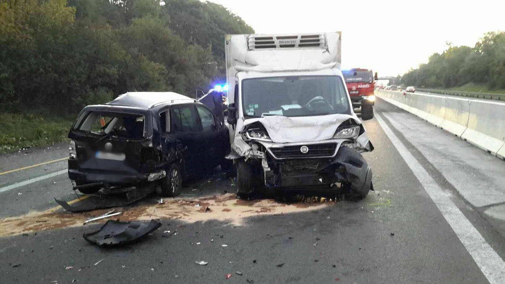 Na dálnici D1 z Vyškova do Brna ráno boural osobák s dodávkou