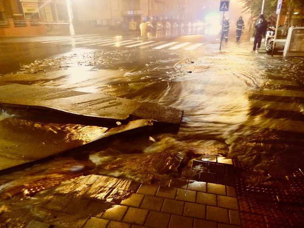 POZOR! Kotlářská je pod vodou, prasklo vodovodní potrubí. Ulice zůstává neprůjezdná