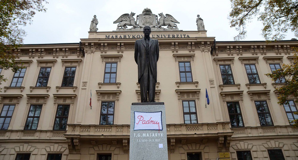 Padnu. Sochu Masaryka v Brně ozdobila další pletená dečka