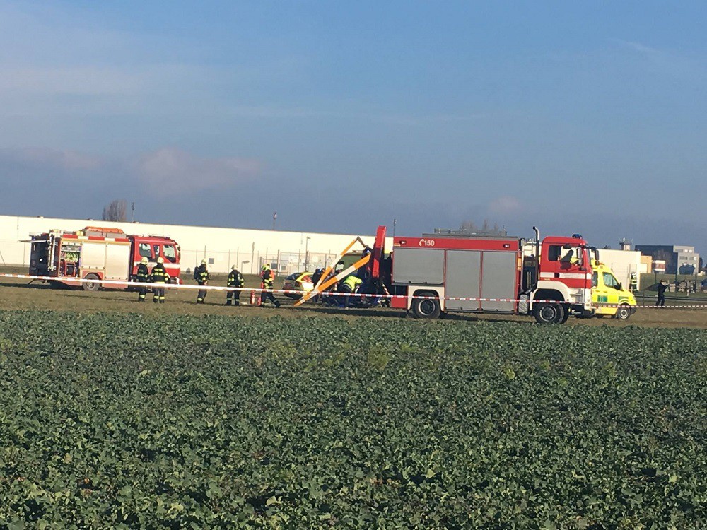 Na poli v Brně havaroval vrtulník, dva lidé se zranili