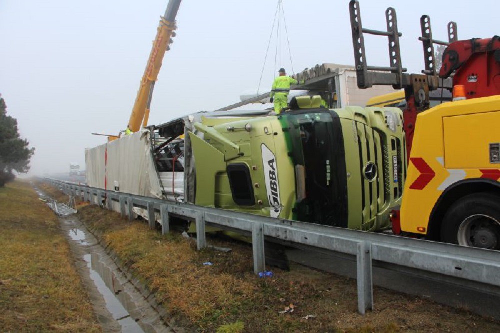 Dálnice D2 ve směru na Bratislavu je už od rána uzavřená. Řidič převrátil kamion na bok