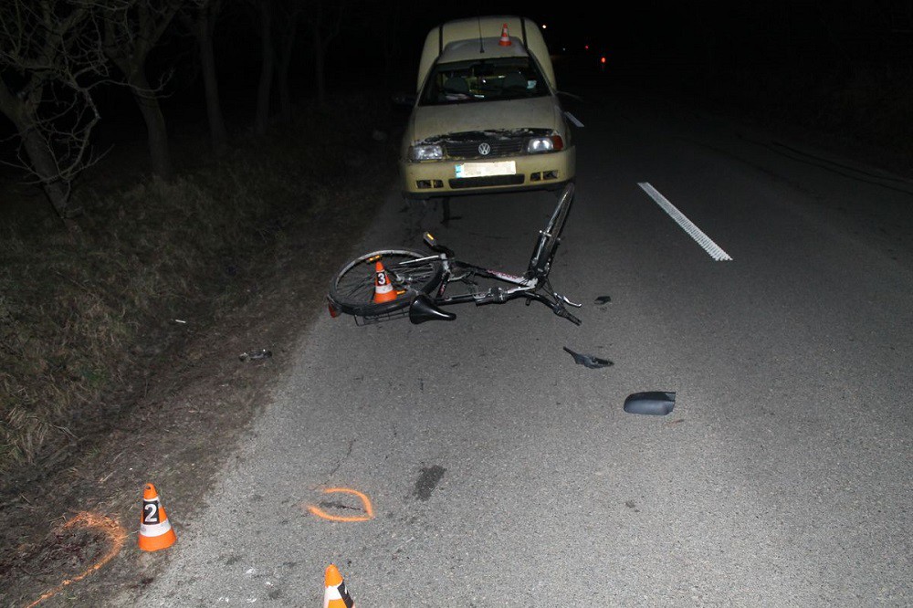 Opilý neosvětlený cyklista přejel do protisměru a srazilo ho auto, nadýchal přes dvě promile