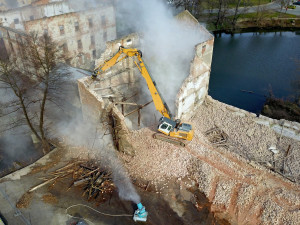 Demolice potrvá přibližně týden. Zajímavostí je, že kvůli blízkosti stavby k rybníku, využívají dělníci speciální vor, jenž zachytává suť, která by jinak skončila ve vodě.