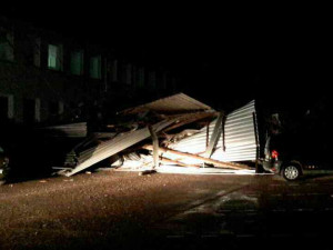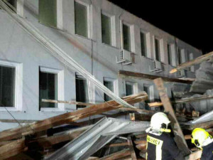 V Hustopečích strhl vítr velikou střechu, která uletěla a dopadla vedle budovy. Částečně poškodila přístřešek vedlejšího domu a dvě zaparkovaná auta.