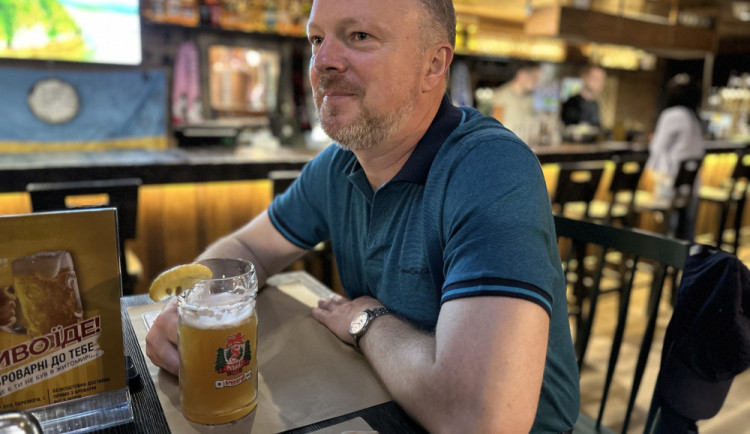 V pivovaru Schulz sedí po poledni lidé asi u pěti stolů. Nachází se pod úrovní země, a tak místo slouží jako kryt ve chvíli, kdy ulicemi zní sirény. Na stěnách visí šály různých fotbalových týmů včetně místního FK Polissja Žytomyr, který letos postoupil do nejvyšší soutěže. „Fotbal je tady hodně populární sport,“ usměje se za stolem sedmačtyřicetiletý Vladimir Friz.