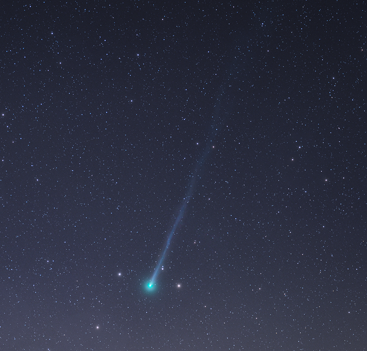 Fotografie komety Lemmon, kterou vyfotil Petr Horálek.Kometa se k Zemi nejvíce přiblíží 21. října. Tou dobou se bude nacházet v souhvězdí Pastýře nízko nad západním obzorem při západu Slunce. V listopadu se pak přesune níže na jižní oblohu a postupně zmizí.