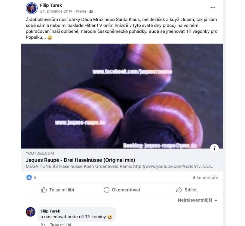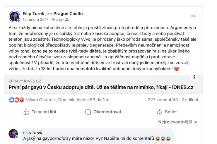 Turkovy problematické výroky redakce odkryla v textu, který obsahoval archiv z let 2009 až 2021 složený z publikovaných a později smazaných facebookových příspěvků a komentářů Filipa Turka. Ten v nich měl opakovaně hlásat otevřeně rasistické, sexistické či homofobní výroky. Nechyběly ani četné narážky na Hitlera a Mussoliniho.