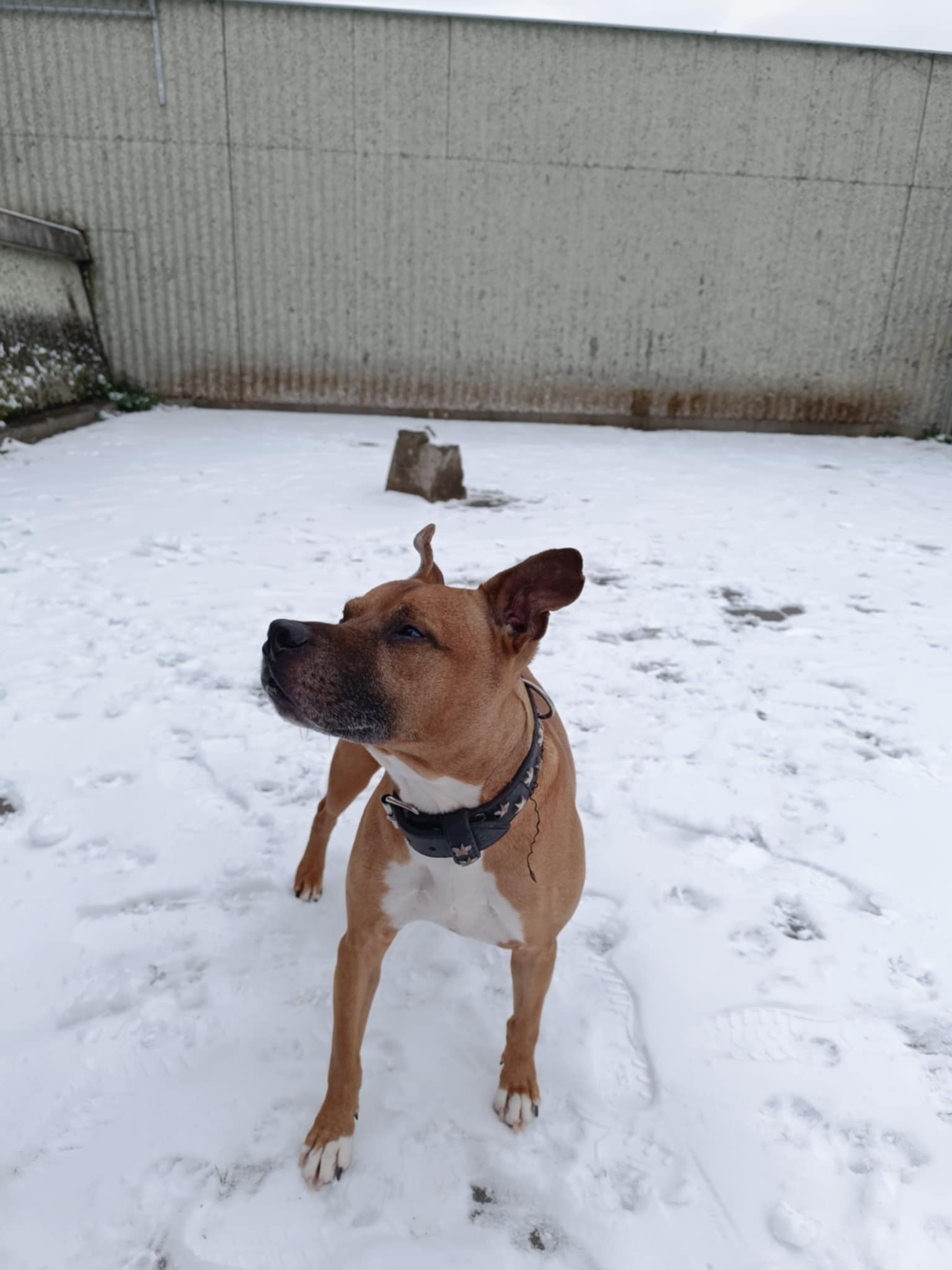 Riky je kříženec německé dogy, který i přes to, že už není štěně, zůstává hravý a plný energie. Miluje aportování a bude skvělým parťákem pro aktivní majitele, kteří mu dopřejí dostatek pohybu. Pro svou velikost se ale nehodí do malého bytu. Ocení spíš prostor a pevnou ruku člověka, který ví, jak vést velké psy.