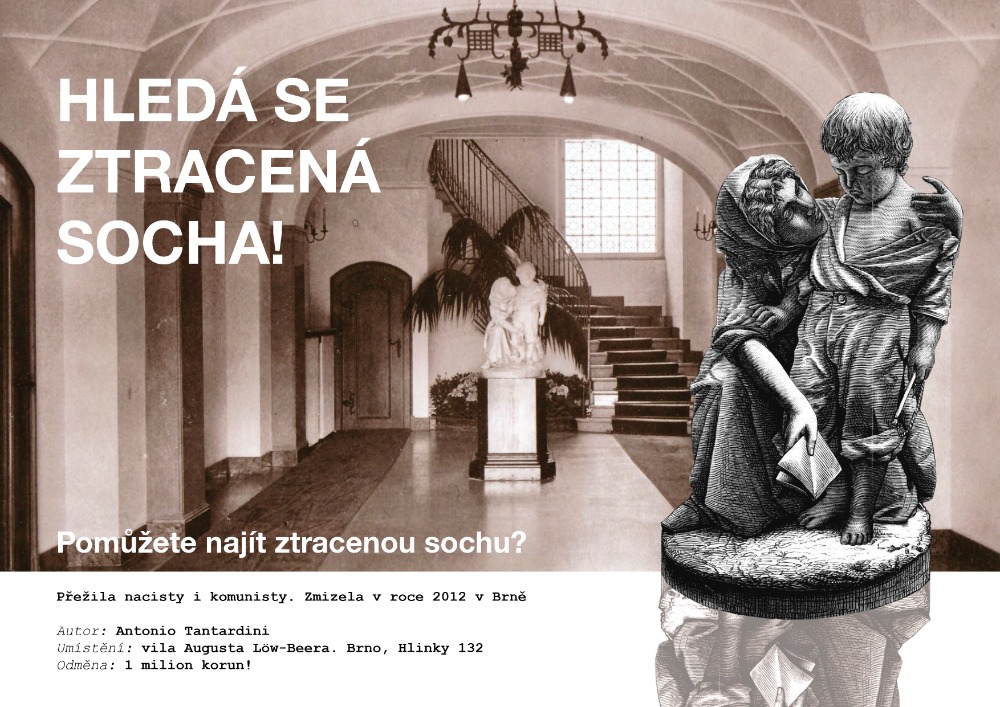Z brněnské vily Augusta Löw-Beera na adrese Hlinky 132 zmizela cenná socha. Potomci slavného průmyslníka spolu s krajským zastupitelem Michalem Doleželem (TOP 09) proto vyhlásili po uměleckém díle pátrání.