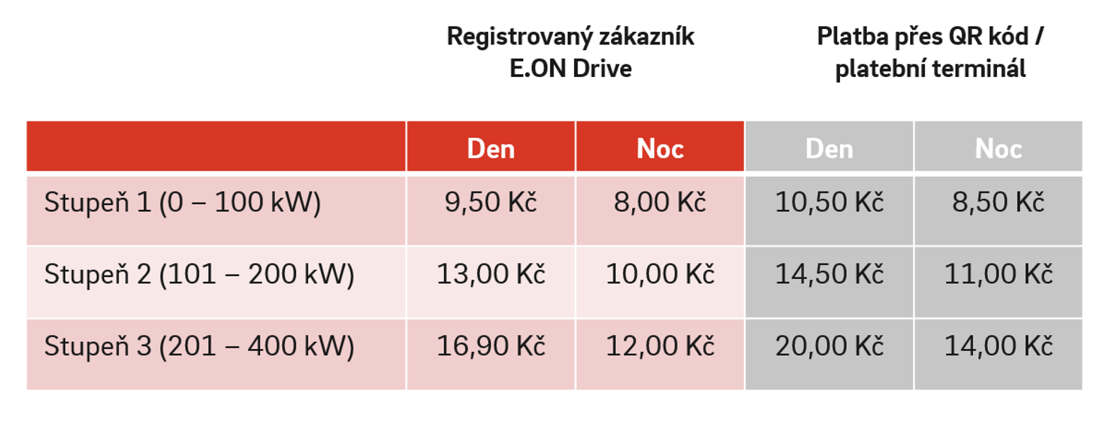 Změna struktury cen za dobíjení reflektuje i reálné chování řidičů elektromobilů. Většina aut dnes nevyužívá maximální výkon nejrychlejších stanic. Nový systém umožňuje vědomě zvolit nižší výkon tam, kde to dává smysl. Například při delším zastavení a ušetřit. Cílem nové cenové struktury je nabídnout zákazníkům jasná pravidla, jednoduché rozhodování a možnost volby. Na modelových příkladech je vidět, že řidiči mohou výrazně ušetřit na provozu vozidla. E.ON Drive tím reaguje na rychlý rozvoj elektromobility i rostoucí síť dobíjecích stanic a nastavuje nový standard přehledného veřejného dobíjení v Česku.