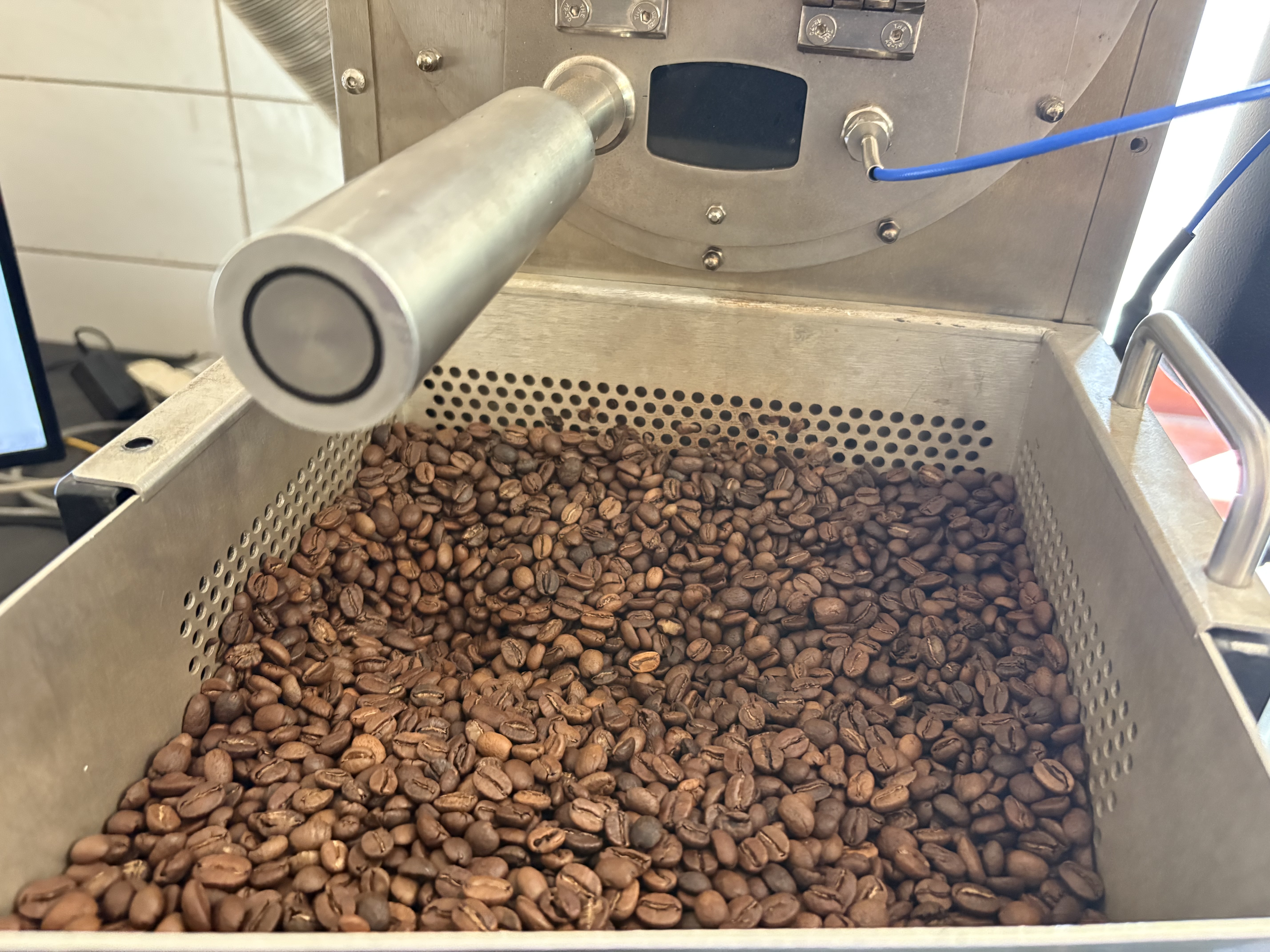Káva ihned po upražení.Než celý proces pražení začne nanovo, musí kavárník vyčistit filtr, do kterého se chytá kávový šaf. Jde o zbytky měkkých obalů zrn, které už nejde odstranit manuálně. Množství šafu kontroluje s každou třetí dávkou, materiál má totiž tendence hořet. Několik pražíren už kvůli němu vyhořelo.