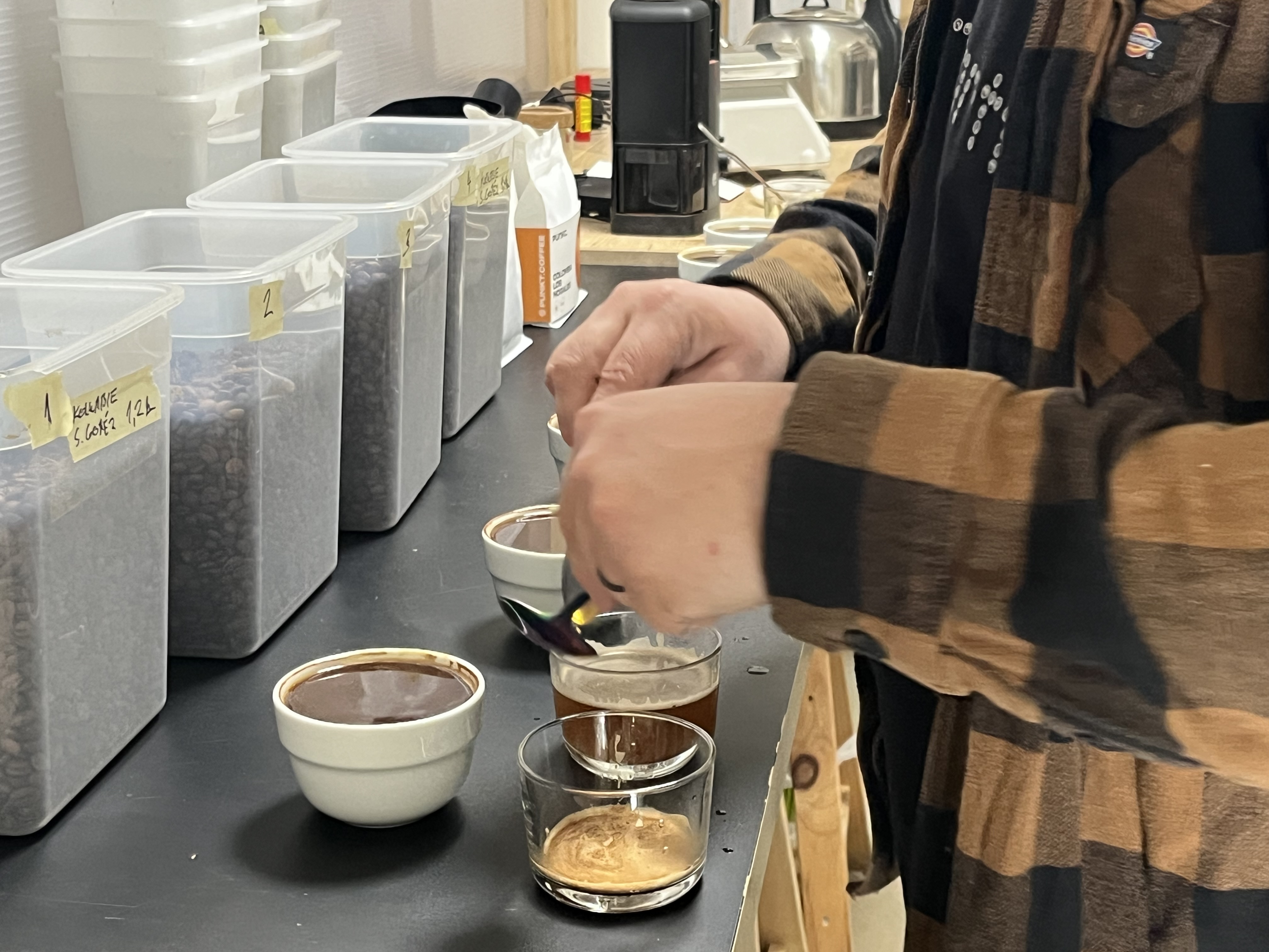 Proces cuppingu.S recepturou zatím Dutkiewič není zcela spokojený. Vydal se sice správným směrem, ale musí přijít na způsob, jak zároveň zachovat sladkost i květinové tóny. Zrnka proto nejspíše znovu ochutná za pár dní, až se pořádně uleží. Nicméně už teď ví, že první dávka cold brew, kterou letos návštěvníci Punktu ochutnají, bude právě z kávy, kterou upražil společně s námi.